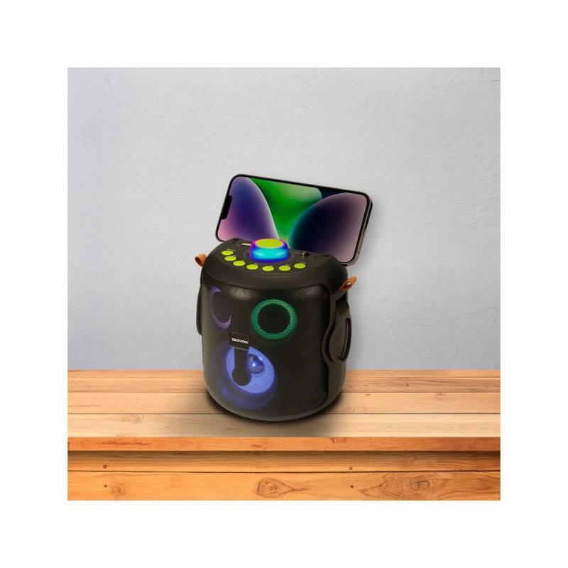 ALTAVOZ DAEWO KARAOKE 15W BLUETOOTH LUCES LED RADIO FM 2 MICROFONOS INALAMBRICOS COLOR NEGRO