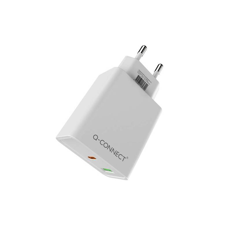 CARGADOR DE PARED USB-A Y USB-C Q-CONNECT 20 W BLANCO