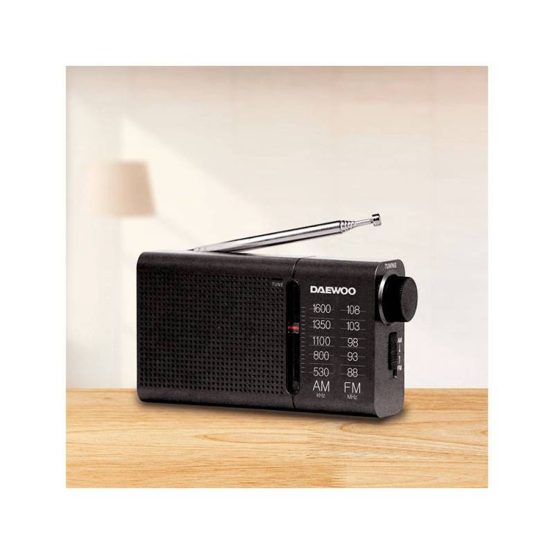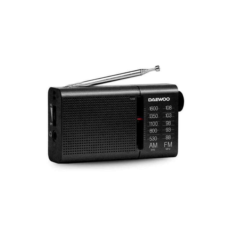RADIO PORTATIL DAEWOO AM/FM ANTENA TELESCOPICA AURICULARES INCLUIDOS JACK 3.5 MM COLOR NEGRO