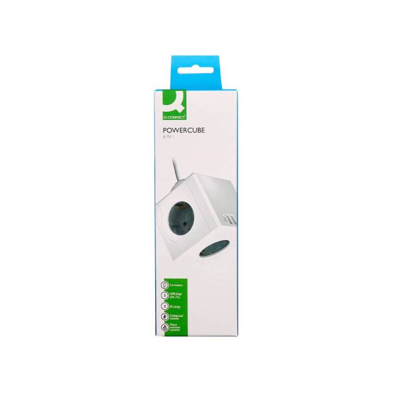 REGLETA Q-CONNECT DE CUBO ENCHUFE MULTIPLE POWER CUBE 6 EN 1 CABLE DE 1,4MT 3 TOMAS DE CORRIENTE+2 USB+1 USB C