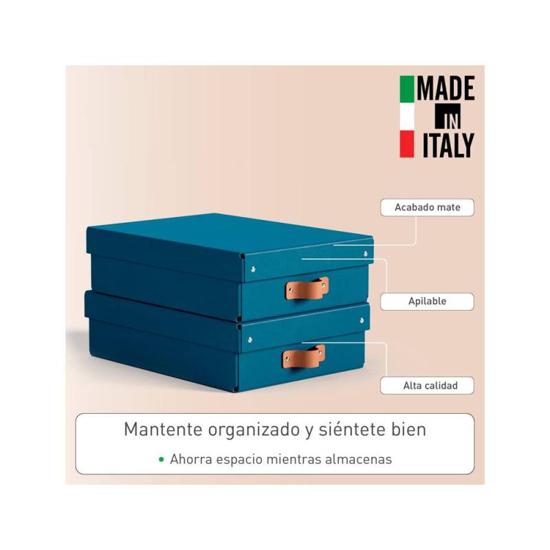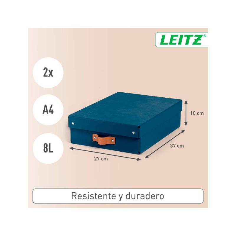 CAJA DE ALMACENAJE LEITZ CARTON MEDIANA BAJA CON ASA DE PIEL COLOR AZUL PACK DE 2 UNIDADES