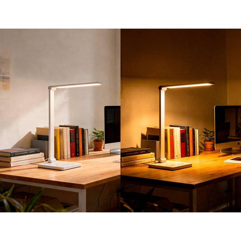 Este modelo destaca por su combinación de funcionalidad, eficiencia y diseño, ofreciendo una iluminación adaptable y confortable para optimizar el rendimiento visual durante largas jornadas de trabajo o estudio.