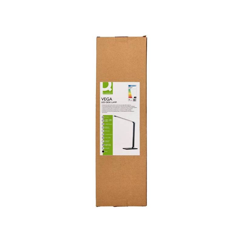 Esta lámpara de escritorio Q-Connect Vega combina funcionalidad y diseño moderno para brindar una iluminación eficiente y adaptable. Fabricada con materiales duraderos como ABS y aluminio, ofrece una potencia de 10W y un flujo luminoso de 400 lúmenes, ideal para tareas que requieren concentración y detalle. Su control táctil y múltiples opciones de ajuste hacen de esta lámpara una herramienta versátil para cualquier espacio de trabajo o estudio. - Potencia y luminosidad: 10W con 52 LEDs que proporcionan 400 lúmenes para una iluminación clara y precisa.