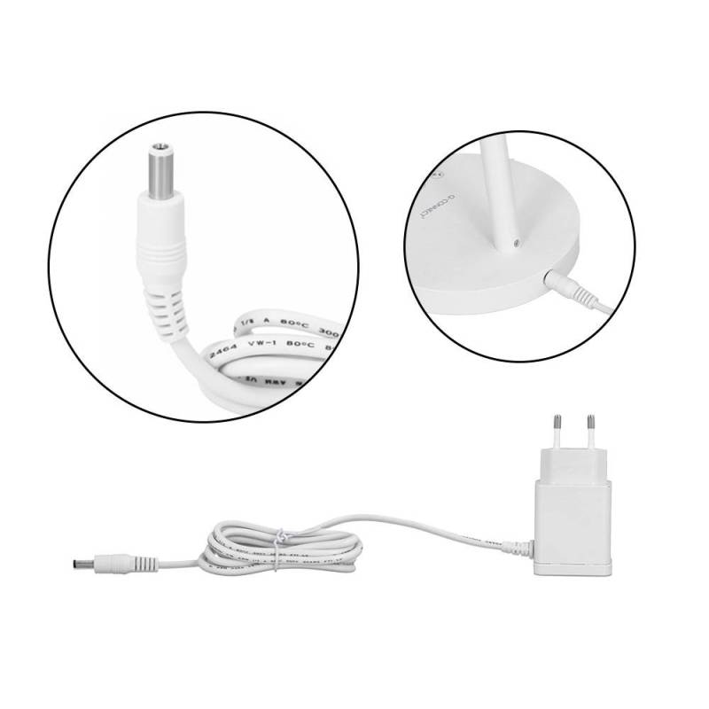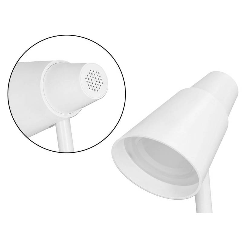 Lampara de sobremesa fabricada en abs con acabado mate. Interruptor táctil, ajuste de temperatura de 3 colores , atenuación de la luz continua, función luz de noche. Cabeza orientable. Tira de 32 led, flujos luminosos 1.300 lux. Cct: 3.000k-6.500k. Lumen: 330lm. Potencia 6 w. Medidas: 197 x 146 x 420 mm. Color blanco. |