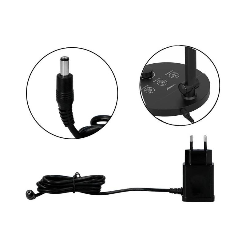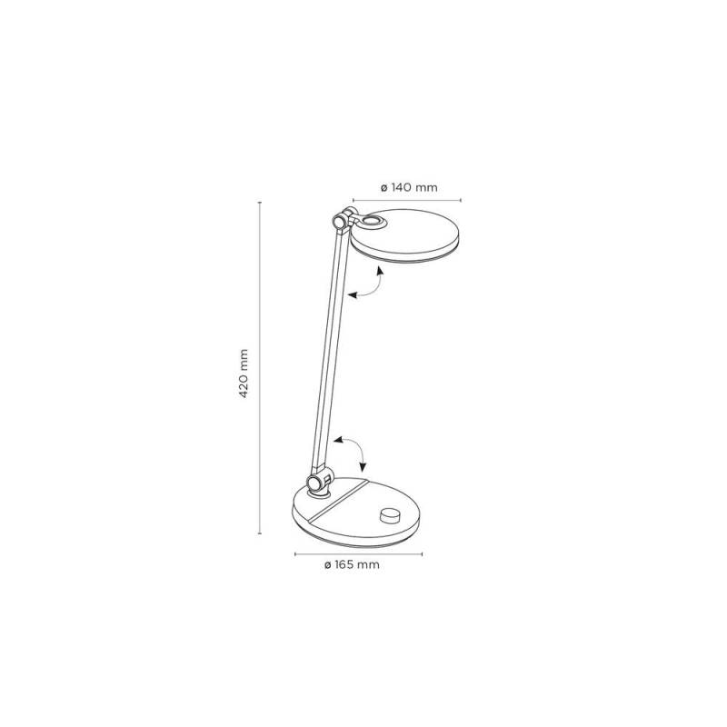 Lampara de sobremesa fabricada en abs con acabado mate. Dispone de un interruptor para encender el aparato y regular la intensidad de la luz. Cabezay brazo orientable. Tira de 80 led, flujos luminosos 1.000 lux. Cct: 3.00 0k-6.500k. Lumen: 450lm. Potencia 7 w. Medidas: 165 x 165 x 437 mm. Color negro. |