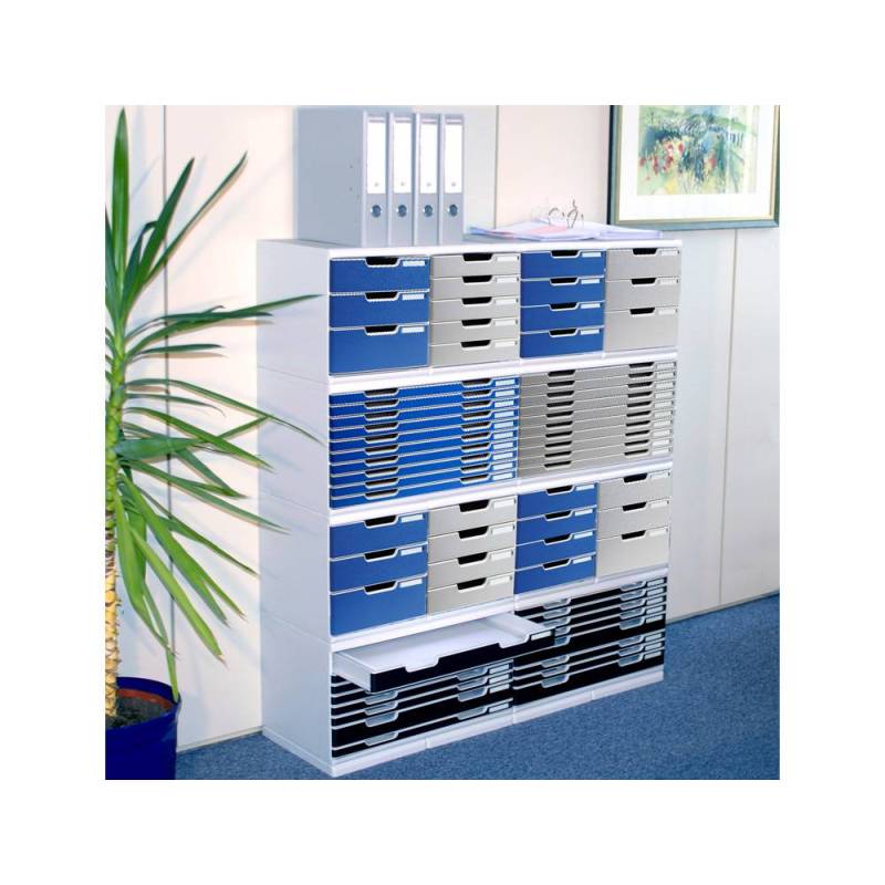 Este módulo es una opción versátil para quienes buscan mantener el orden en el espacio de trabajo sin renunciar a la estética ni a la funcionalidad. Su construcción en poliestireno y diseño pensado para documentos grandes lo hacen especialmente adecuado para la gestión eficiente de materiales de oficina que requieren cuidado y fácil acceso.