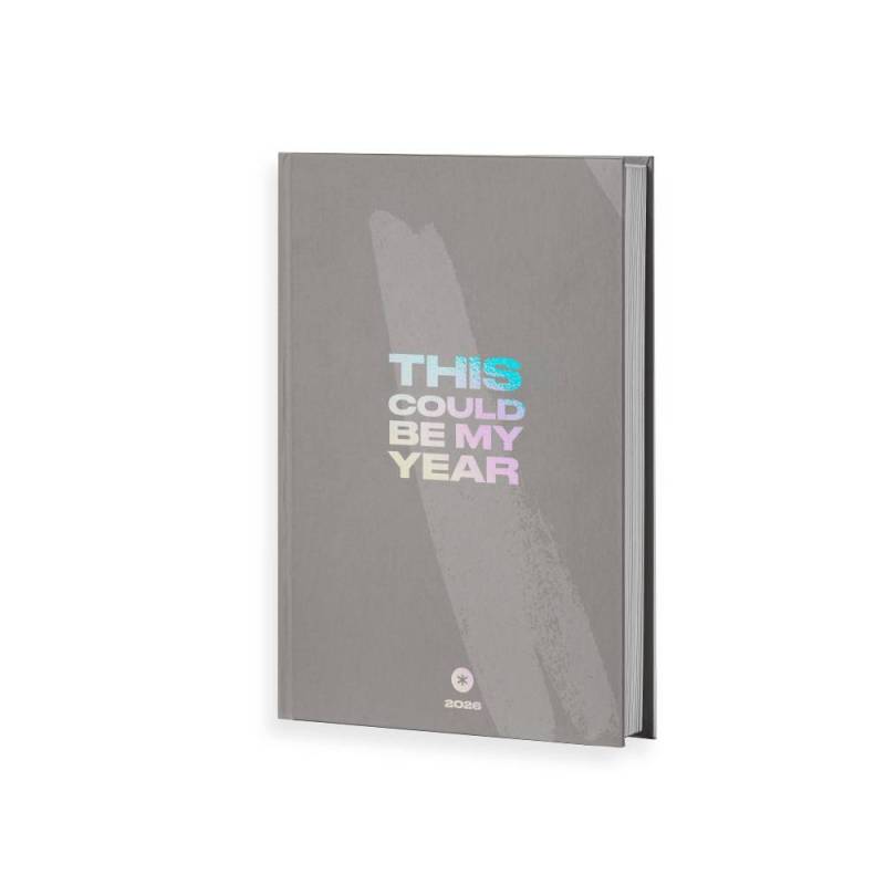 Organiza tu 2026 con esta agenda encuadernada que combina diseño funcional y conciencia ambiental. Con un formato A5+ que ofrece amplio espacio para cada día, este planificador presenta un papel gris de alta calidad certificado por FSC, ideal para quienes valoran tanto la practicidad como la sostenibilidad.