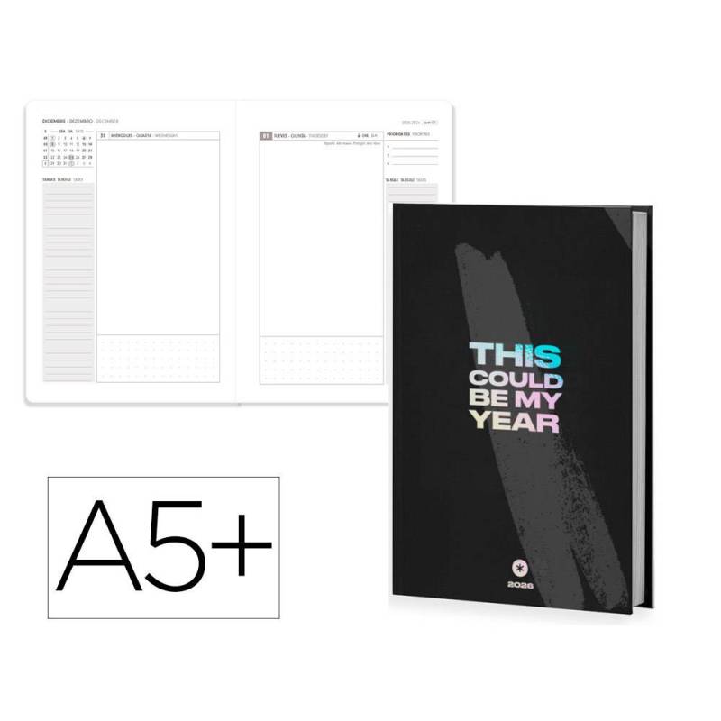 AGENDA ENCUADERNADA ANTARTIK MY YEAR A5+ 2026 DÍA PÁGINA NEGRO PAPEL 80G FSC