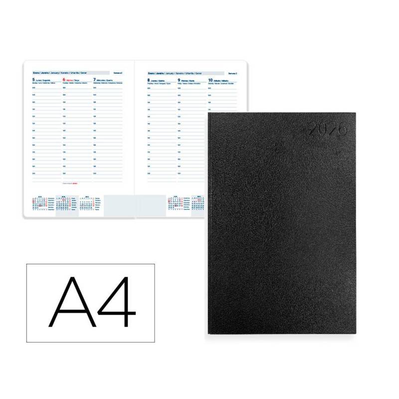 AGENDA ENCUADERNADA LIDERPAPEL CORFU A4 2026 SEMANA VISTA NEGRO PAPEL 60 GR