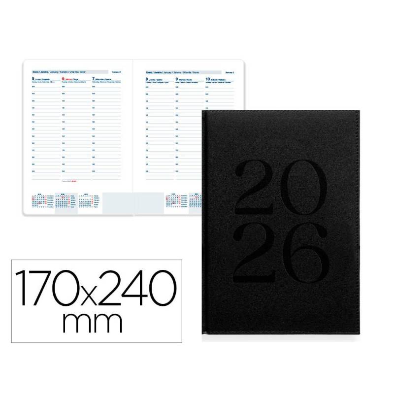 AGENDA ENCUADERNADA LIDERPAPEL CRETA 170X240 MM 2026 SEMANA VISTA NEGRO PAPEL 70 GR