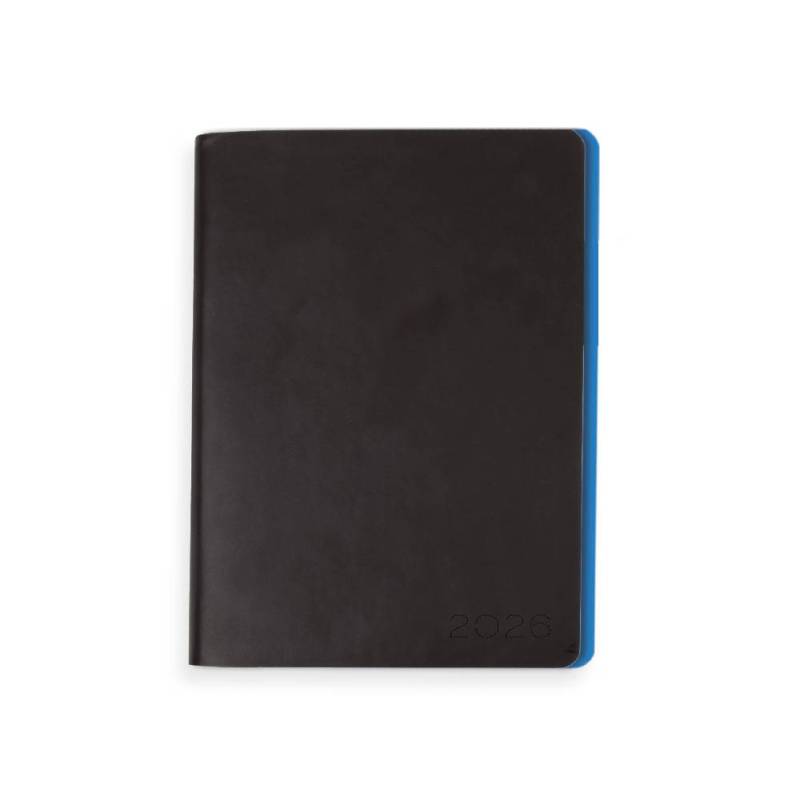 Organiza tu año 2026 con esta agenda encuadernada en formato A5, diseñada para ofrecerte un amplio espacio de planificación con un sistema de día por página. Su tapa de simil piel flexible aporta un acabado profesional y resistente, mientras que el borde de las páginas en color azul añade un detalle distintivo y elegante. Ideal para llevar siempre contigo, combina funcionalidad y sostenibilidad gracias a su papel certificado FSC.