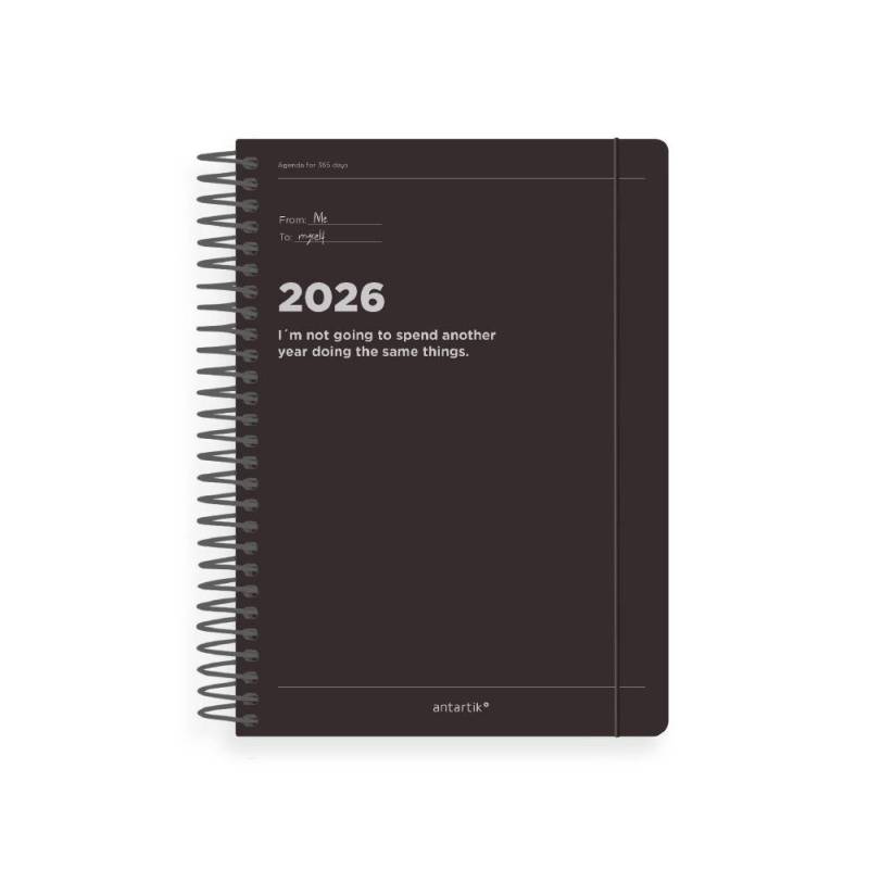 AGENDA ESPIRAL ANTARTIK MANIFEST A5+ 2026 DÍA PÁGINA NEGRO PAPEL 80G FSC