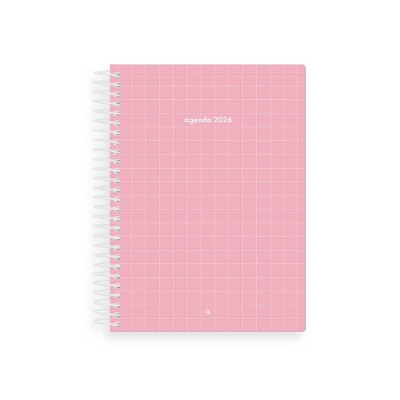 Organiza tu año 2026 de manera eficiente y con estilo gracias a esta agenda espiral con formato A5. Su diseño sencillo y moderno en color rosa, combinado con una portada flexible de polipropileno, la convierte en una opción práctica y visualmente atractiva. Cada día cuenta con una página individual para que puedas anotar todas tus citas y tareas con comodidad, mientras que el papel de 70 gramos certificado FSC garantiza una escritura limpia y respetuosa con el medio ambiente.