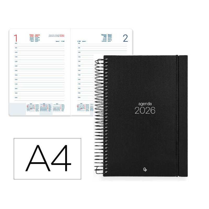 AGENDA ESPIRAL LIDERPAPEL OLBIA A4 2026 DIA PAGINA NEGRO PAPEL 60 GR FSC