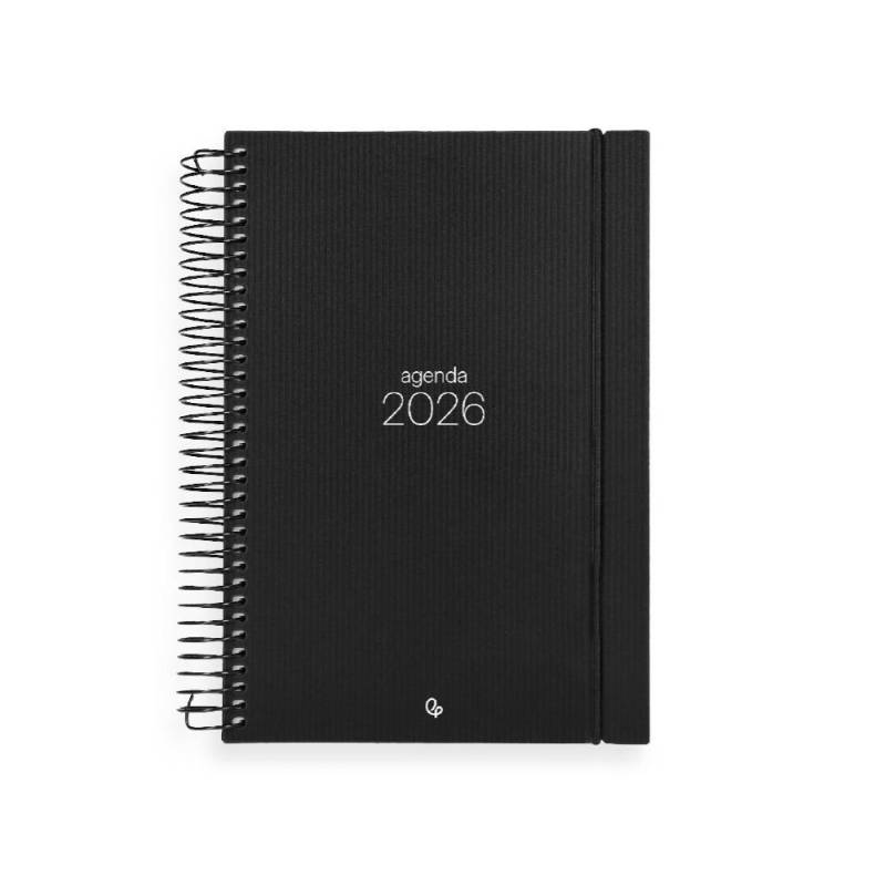 AGENDA ESPIRAL LIDERPAPEL OLBIA A5 2026 DIA PAGINA NEGRO PAPEL 60 GR FSC