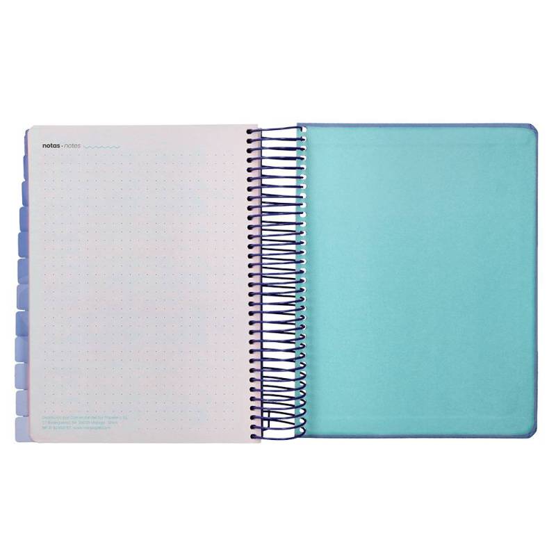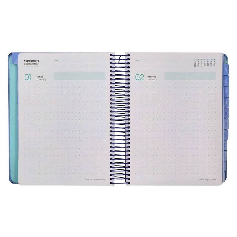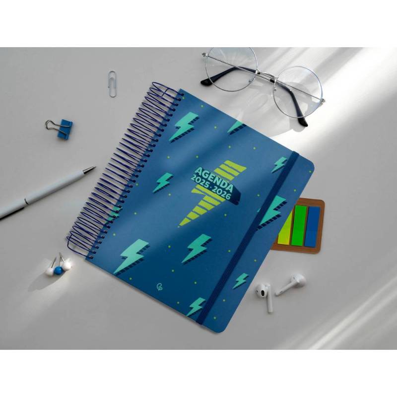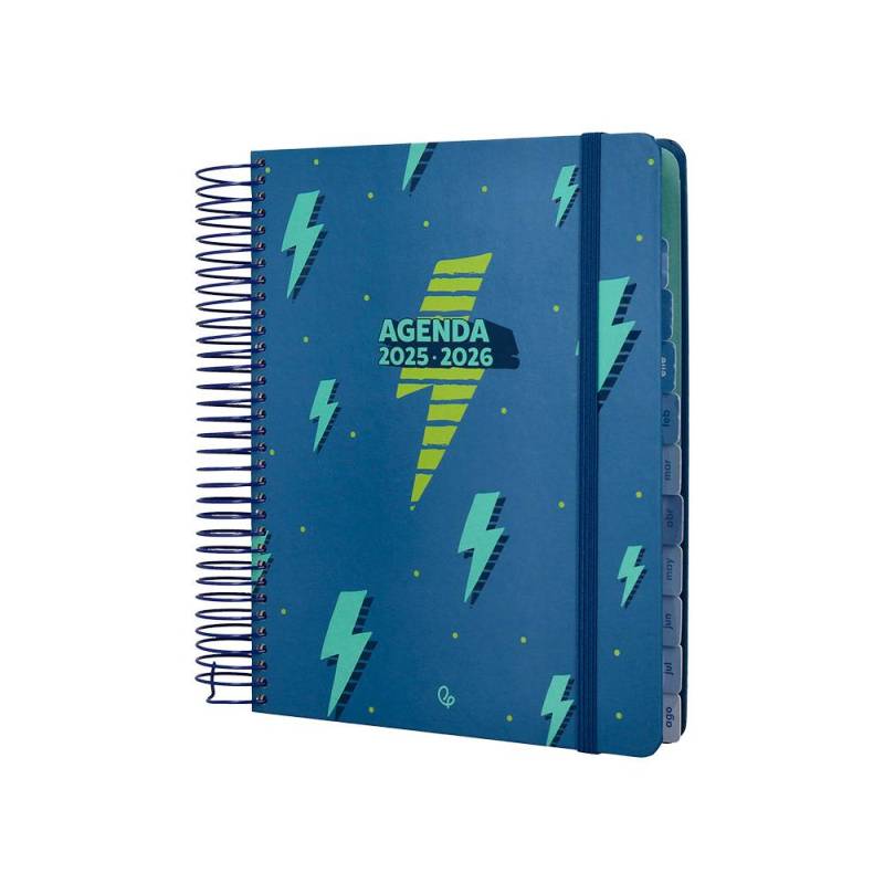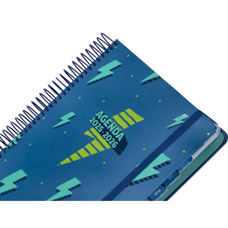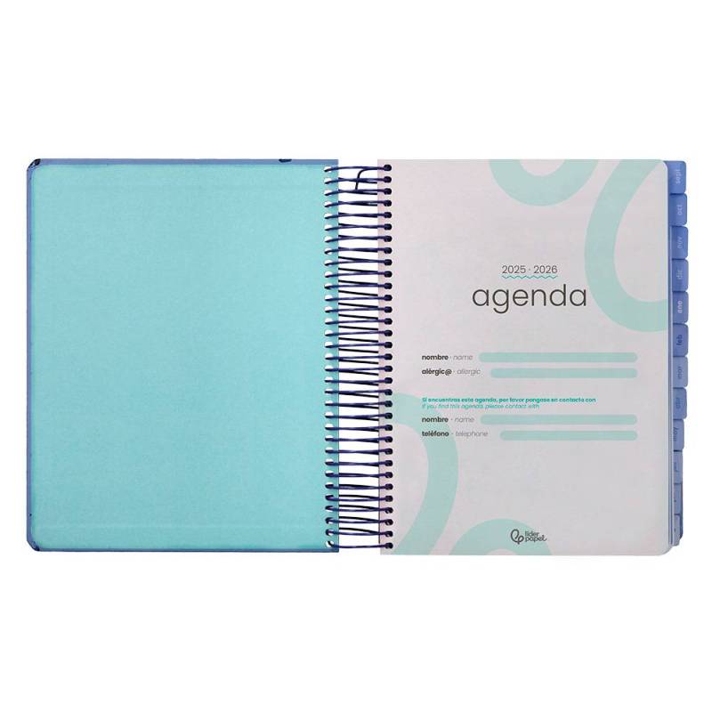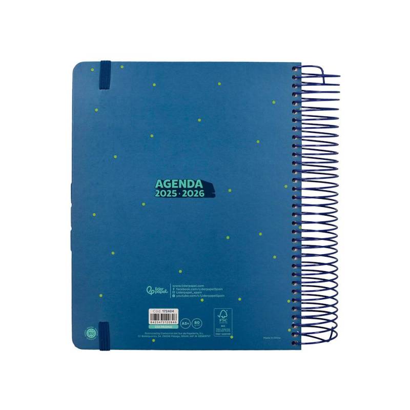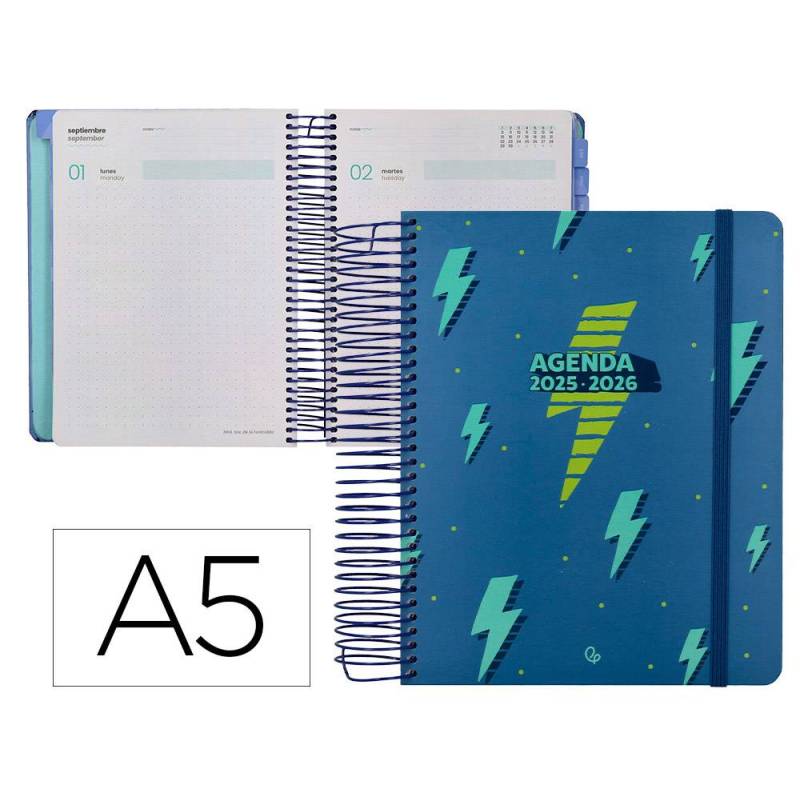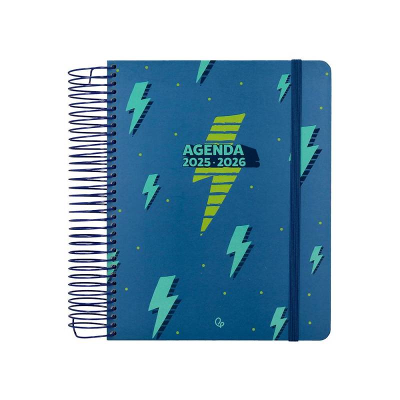 AGENDA ESCOLAR LIDERPAPEL 25-26 ESPIRAL PATTERNS RAYOS AZUL DIA PAGINA A5 BILINGÜE PAPEL FSC 80 GR