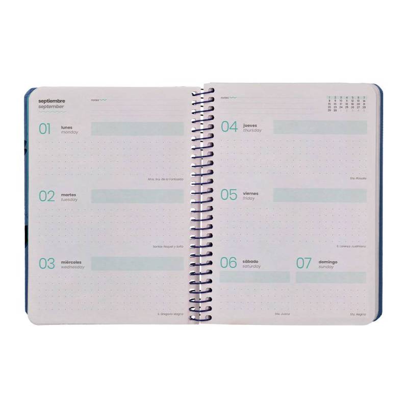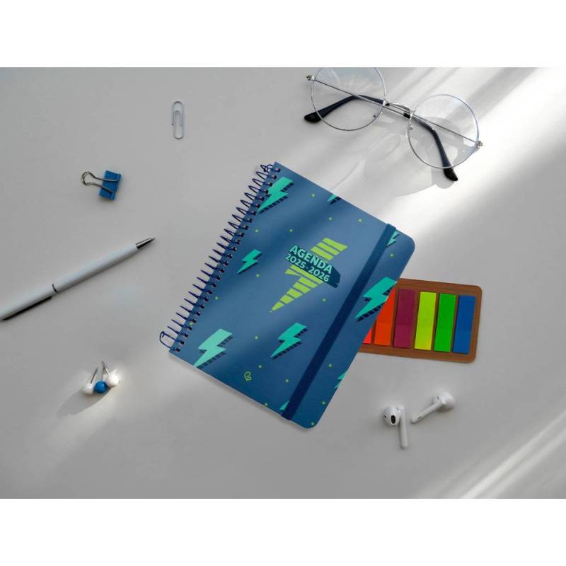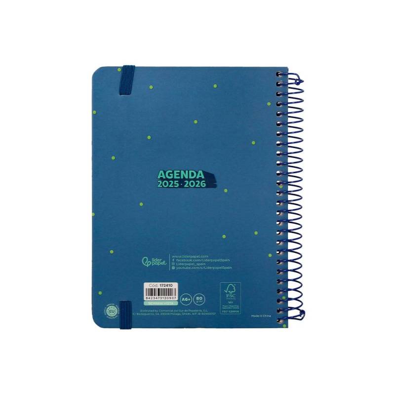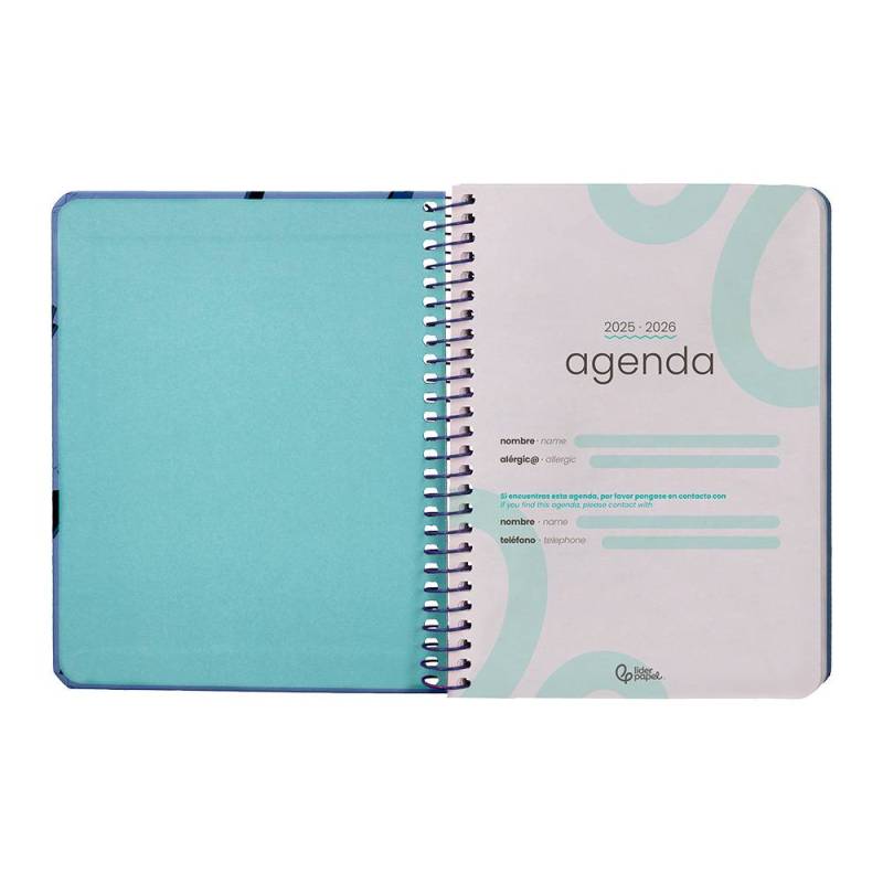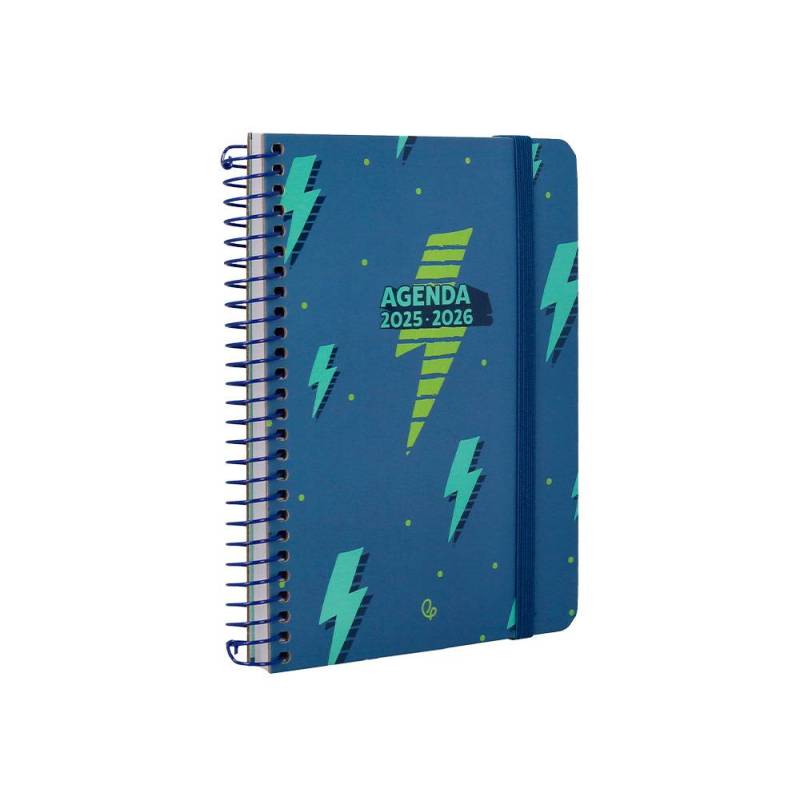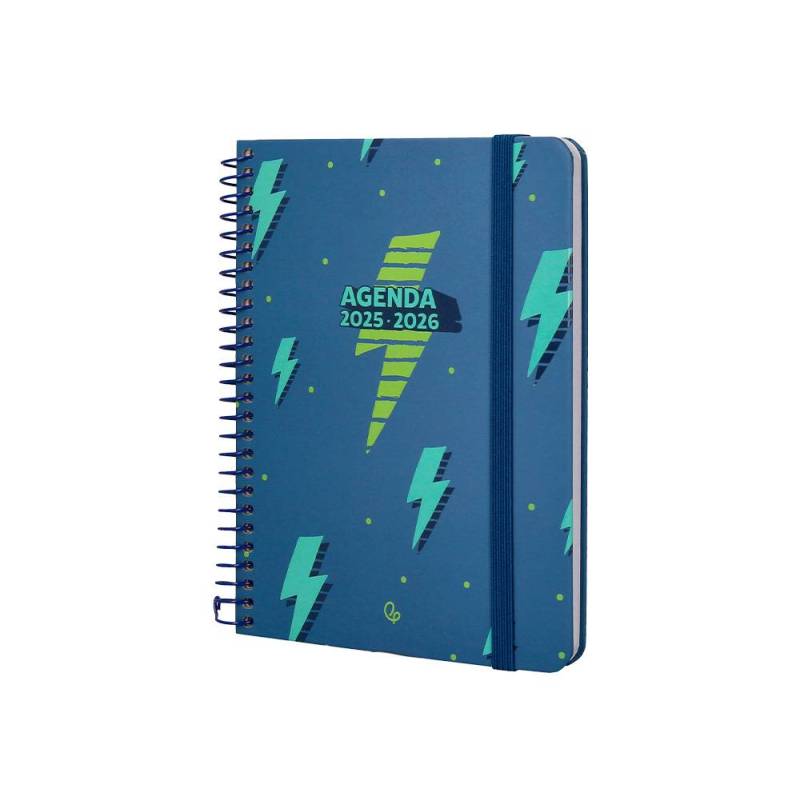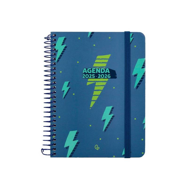 AGENDA ESCOLAR LIDERPAPEL 25-26 ESPIRAL PATTERNS RAYOS AZUL SEMANA VISTA A6 BILINGÜE PAPEL FSC 80 GR