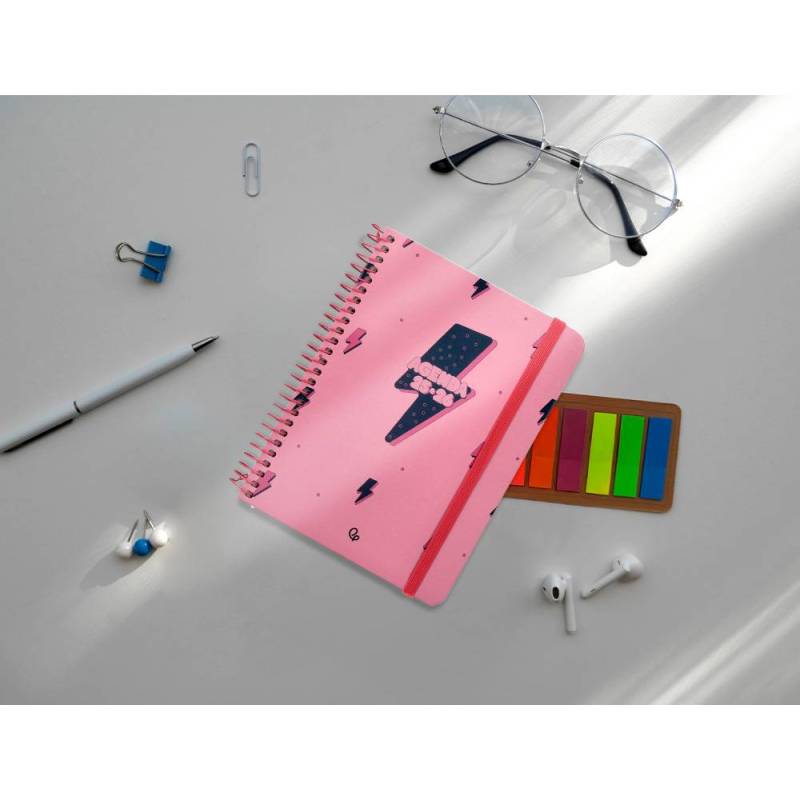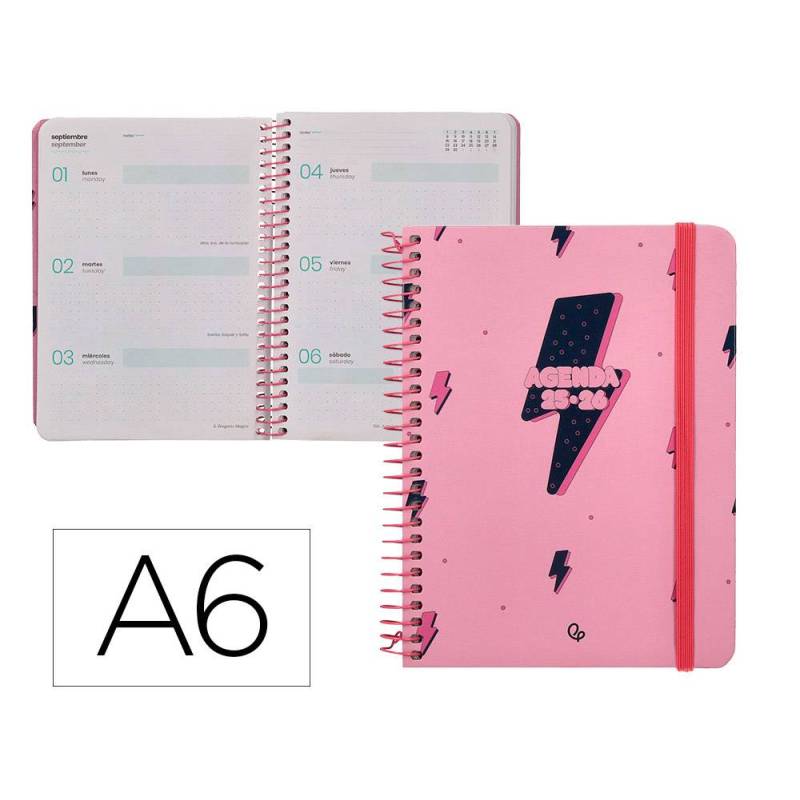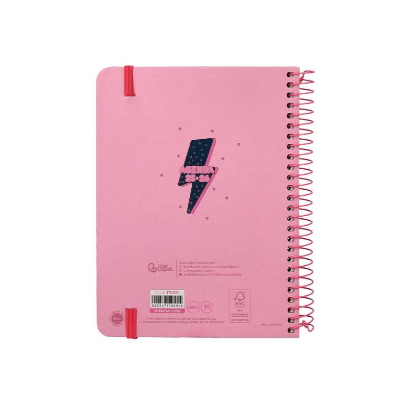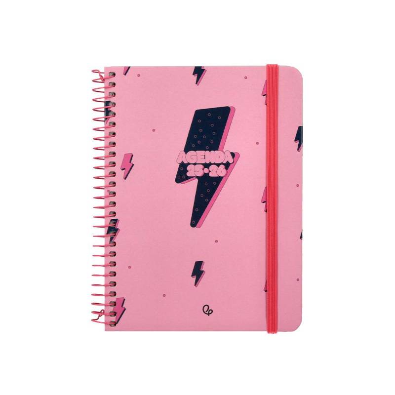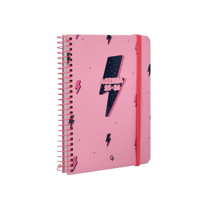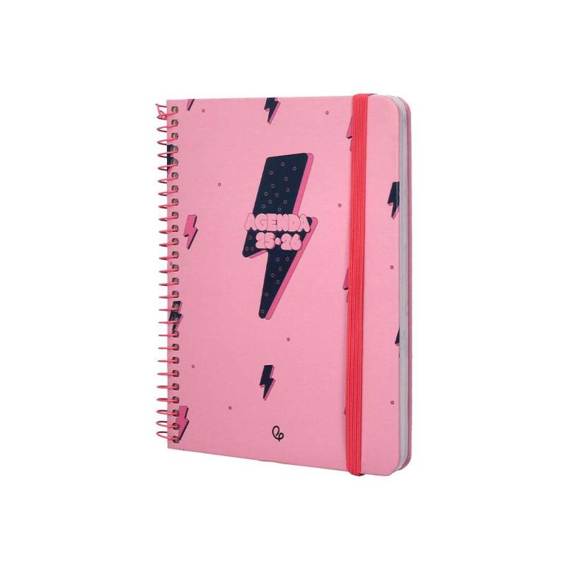 AGENDA ESCOLAR LIDERPAPEL 25-26 ESPIRAL PATTERNS RAYOS ROSA SEMANA VISTA A6 BILINGÜE PAPEL FSC 80 GR