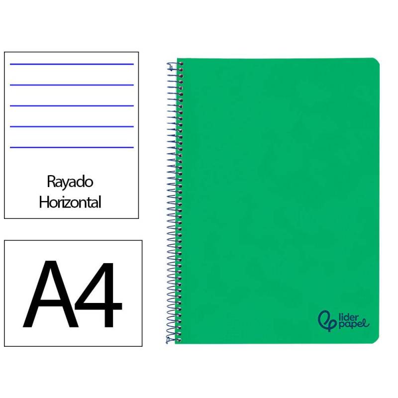CUADERNO ESPIRAL LIDERPAPEL A4 WONDER TAPA PLASTICO 80H 90GR RAYADO HORIZONTAL CON MARGEN COLOR VERDE OSCURO