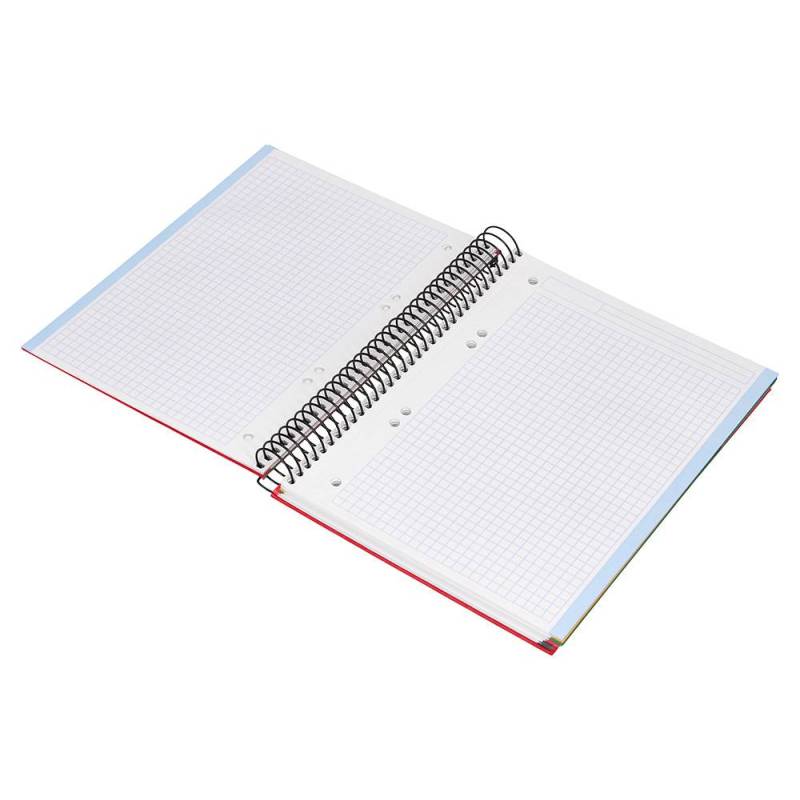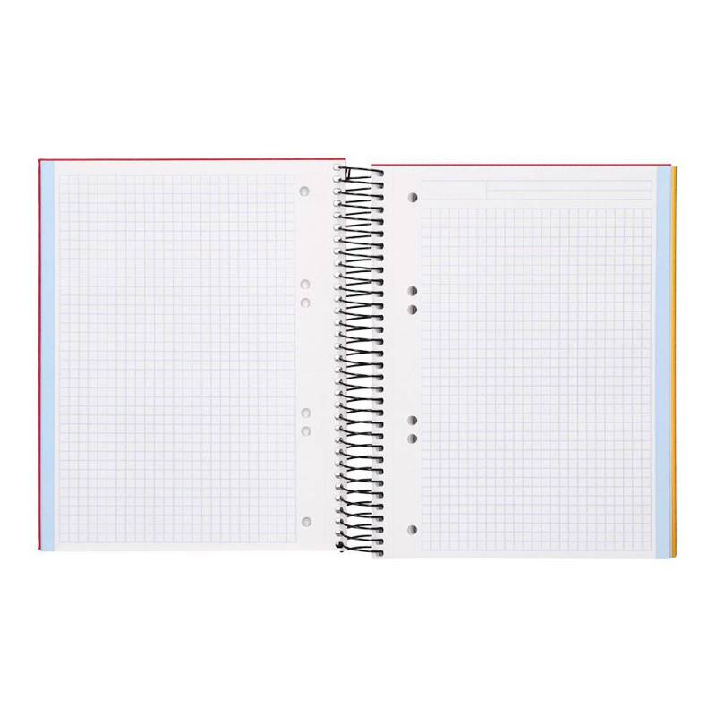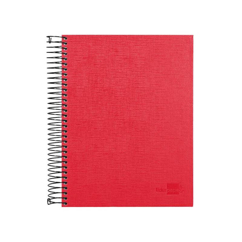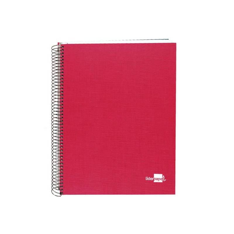 CUADERNO ESPIRAL LIDERPAPEL A5 MICRO PAPERCOAT TAPA FORRADA 140H 75 GR CUADRO5MM 5 BANDAS 6 TALADROS ROJO