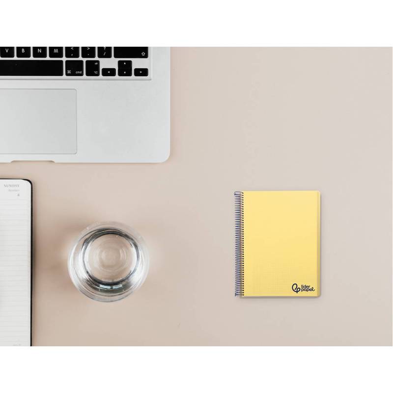 Cuaderno espiral liderpapel a7 micro wonder tapa plastico 100h 90 gr cuadro 5mm 4 bandas color amarillo. |