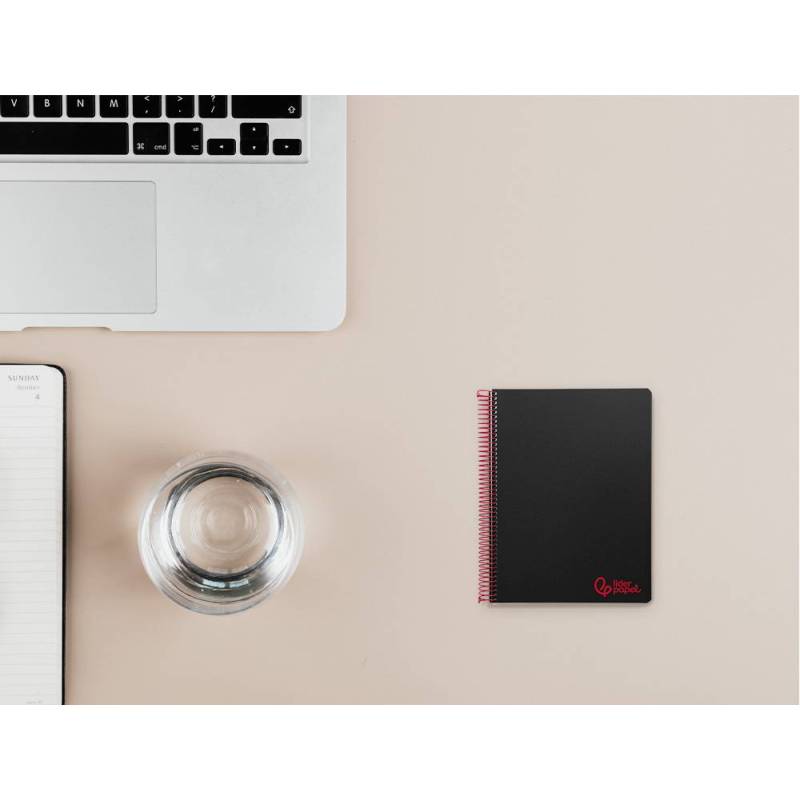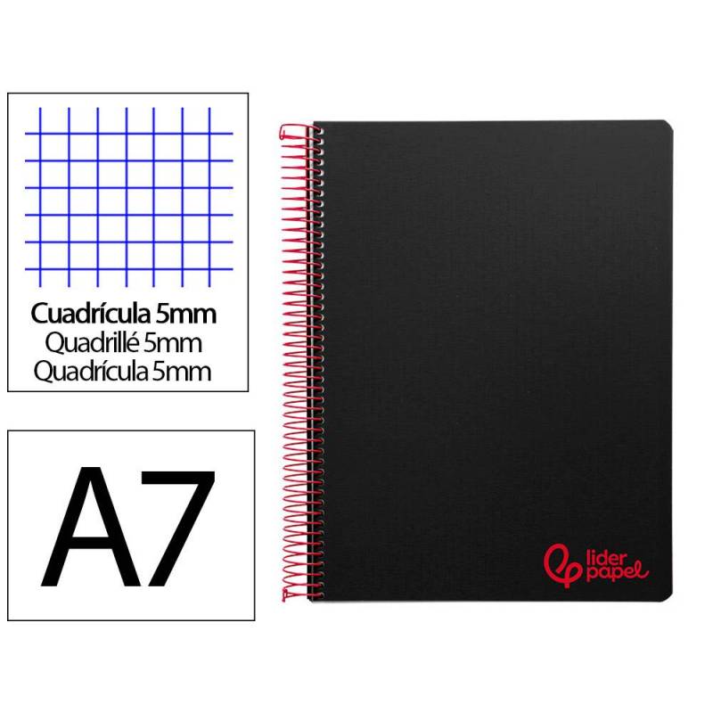 Cuaderno espiral liderpapel a7 micro wonder tapa plastico 100h 90 gr cuadro 5mm 4 bandas color negro. |