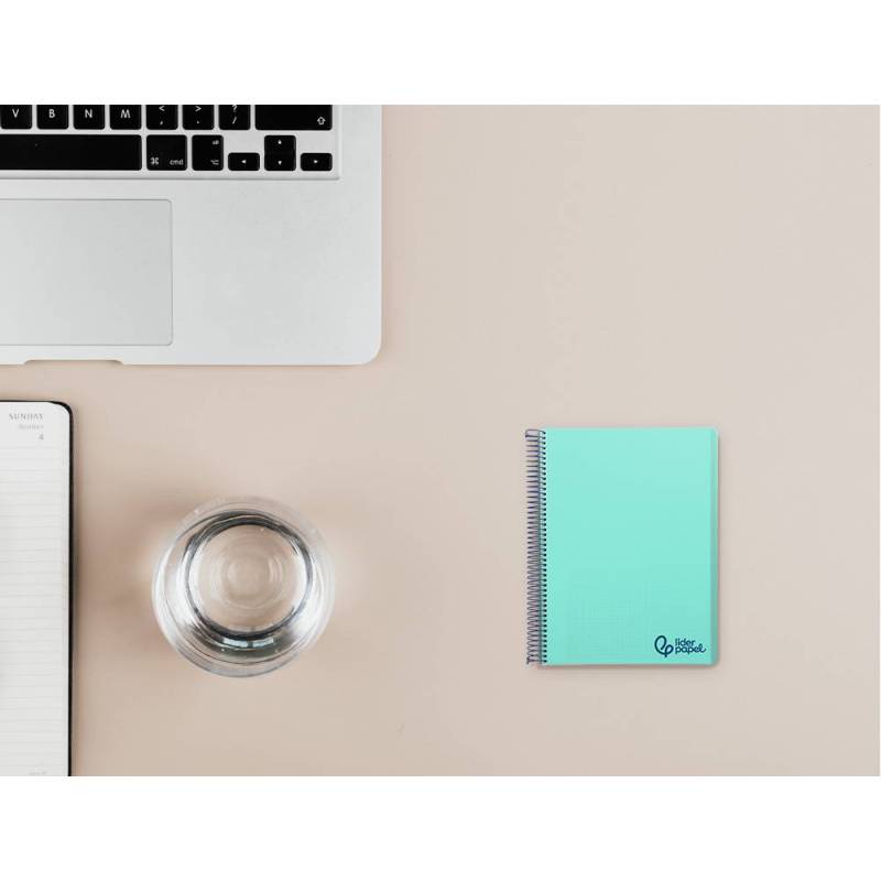 Cuaderno espiral liderpapel a7 micro wonder tapa plastico 100h 90 gr cuadro 5mm 4 bandas color verde.