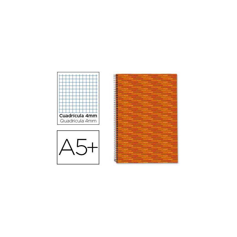 CUADERNO ESPIRAL LIDERPAPEL CUARTO MULTILIDER TAPA FORRADA 80H 80 GR CUADRO 4MM CON MARGEN NARANJA