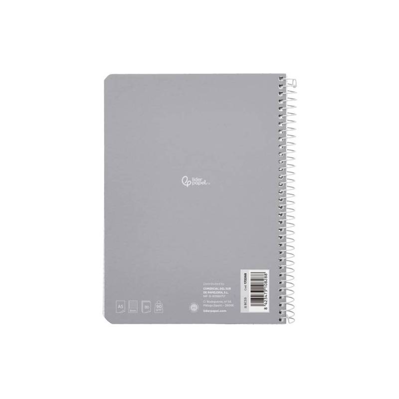 Este cuaderno espiral de tamaño DIN A5 combina funcionalidad y diseño en un formato compacto ideal para uso escolar, académico o profesional. Su tapa dura plastificada mate y su papel de alta calidad aseguran durabilidad y una experiencia de escritura cómoda y ordenada, gracias a su pauta cuadriculada con margen. Es una opción práctica para quienes buscan un cuaderno resistente y versátil en su día a día.