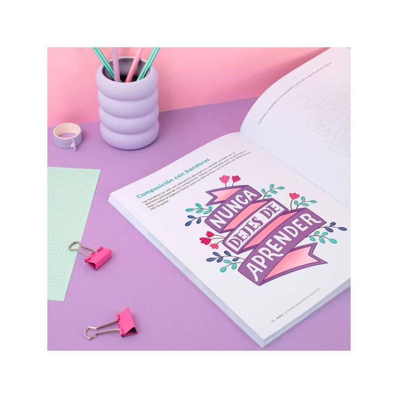El Cuaderno Rubio Lettering para Mentes Creativas es una herramienta esencial para quienes desean sumergirse en el arte del lettering. Diseñado para combinar el dibujo y la escritura, este cuaderno ofrece un método didáctico que permite a los usuarios avanzar desde lo básico hasta técnicas más complejas mediante explicaciones y ejercicios bien estructurados.