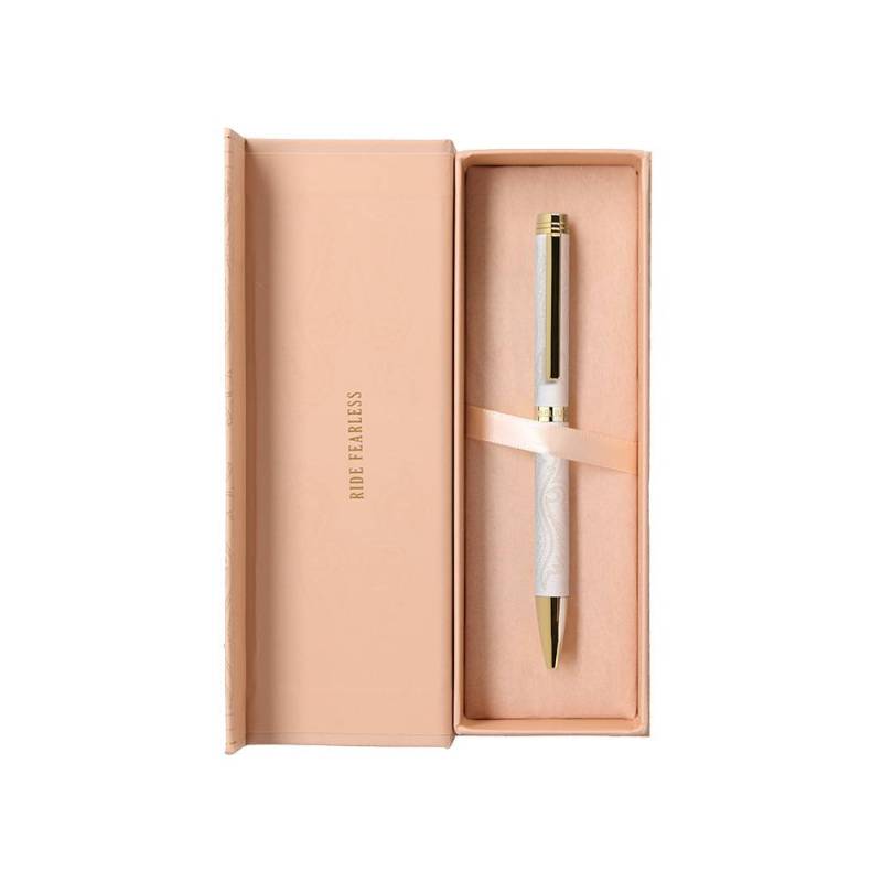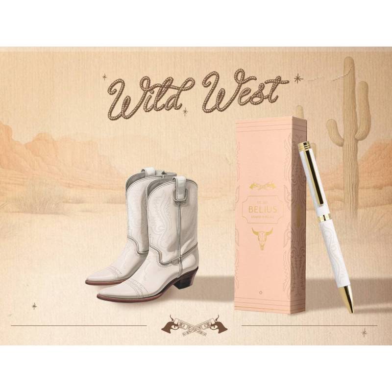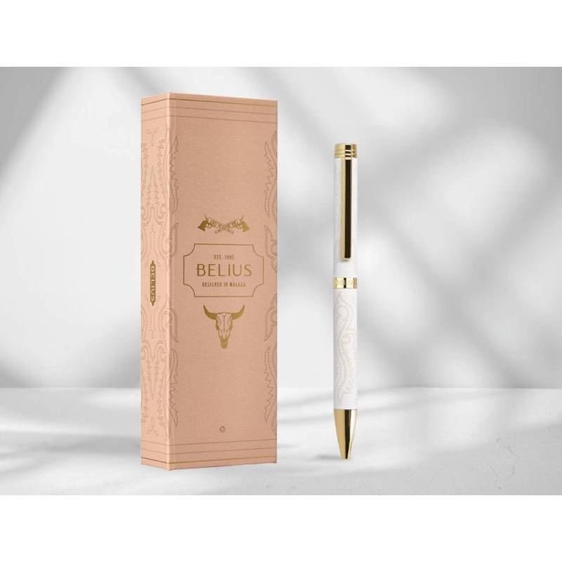 BOLIGRAFO BELIUS WILD WEST ALUMINIO COLOR CREMA DORADO TINTA COLOR AZUL CAJA DE DISEÑO