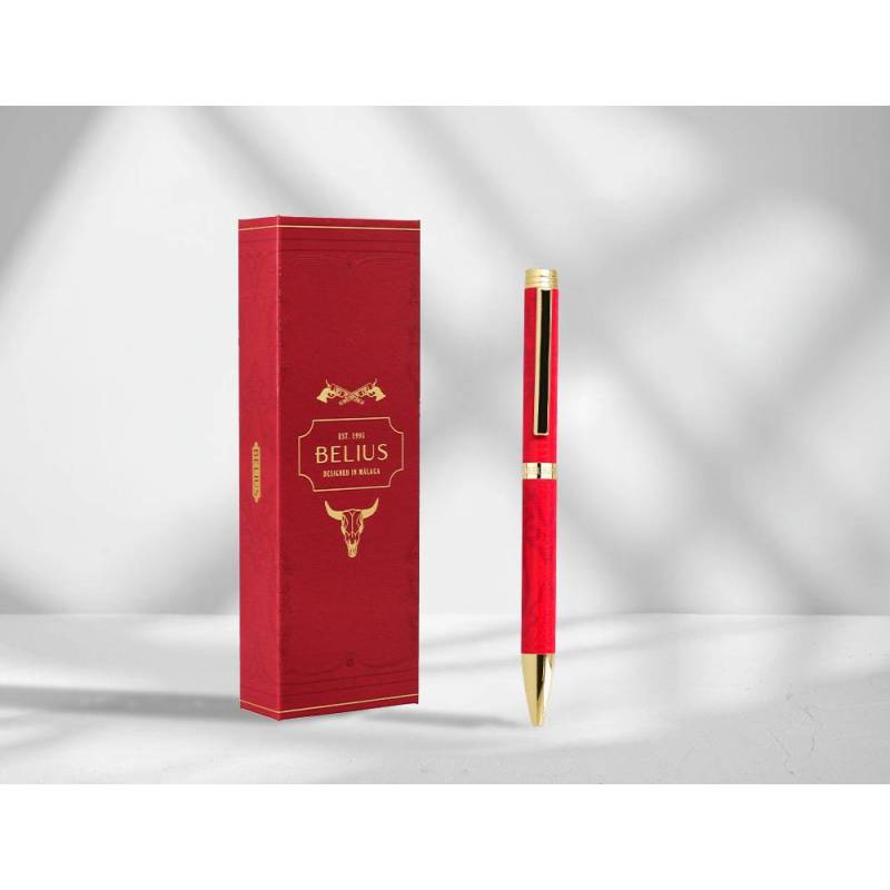 BOLIGRAFO BELIUS WILD WEST ALUMINIO COLOR GRANATE DORADO TINTA COLOR AZUL CAJA DE DISEÑO