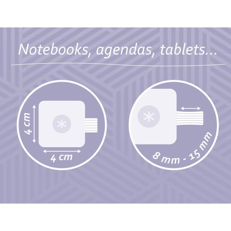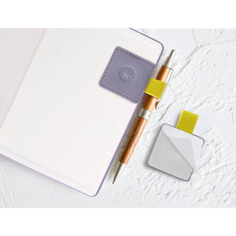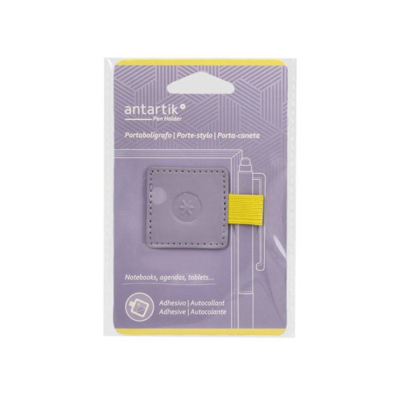 PORTABOLIGRAFO AUTOADHESIVO ANTARTIK PARA CUADERNO NOTE CON ELASTICO HASTA 15 MM GROSOR 80 MM MORADO Y AMARILLO