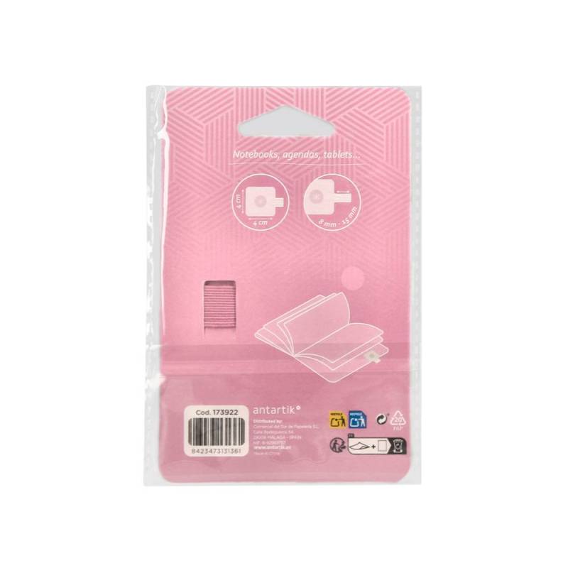 PORTABOLIGRAFO AUTOADHESIVO ANTARTIK PARA CUADERNO NOTE CON ELASTICO HASTA 15 MM GROSOR 80 MM ROSA 40X40 MM