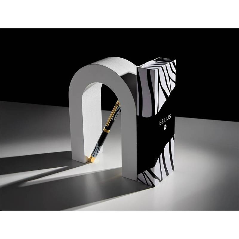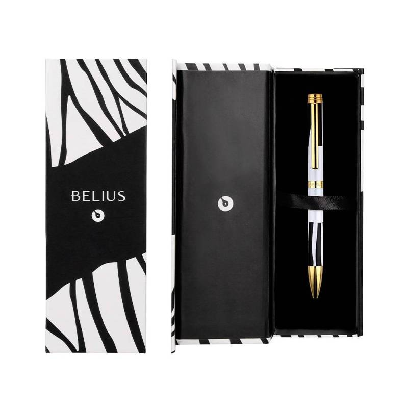 BOLIGRAFO BELIUS DUALITA CUERPO BLANCO COLOR NEGRO TINTA AZUL CAJA DE DISEÑO