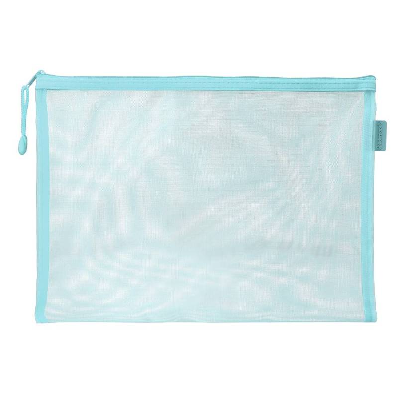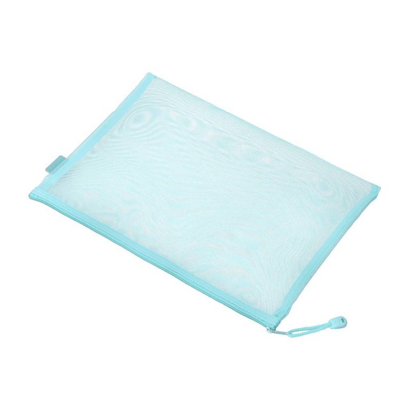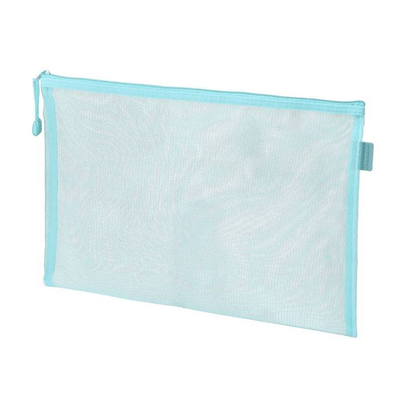 La bolsa zipper bag de Liderpapel en color azul pastel es un estuche multiusos fabricado en poliéster transpirable de alta calidad, diseñado para ofrecer una solución práctica y versátil en la organización y transporte de documentos y objetos de tamaño DIN A4. Su estructura en rejilla permite visualizar fácilmente el contenido, mientras que el cierre de cremallera garantiza una protección segura y cómoda para todo tipo de artículos.