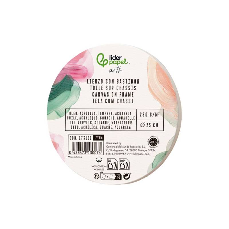 Este bastidor redondo de 25 cm de diámetro ofrece una superficie de alta calidad y formato original para artistas que desean explorar nuevas formas en sus creaciones. Con un lienzo de algodón 100% y un gramaje de 280 g/m², proporciona un soporte resistente y duradero, ideal para técnicas como óleo y acrílico. Su estructura de madera y el lienzo grapado en la parte trasera aseguran un tensado firme y un acabado profesional.