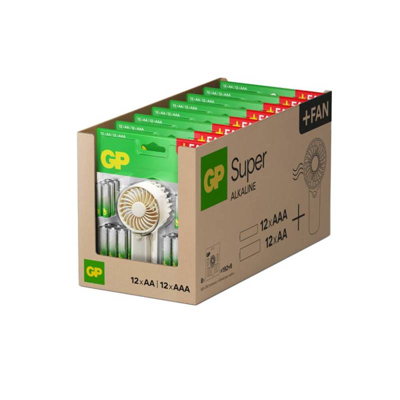 PILA GP ULTRA ALCALINA BLISTER DE 12 UNIDADES AA + 12 UNIDADES AAA + VENTILADOR DE MANO