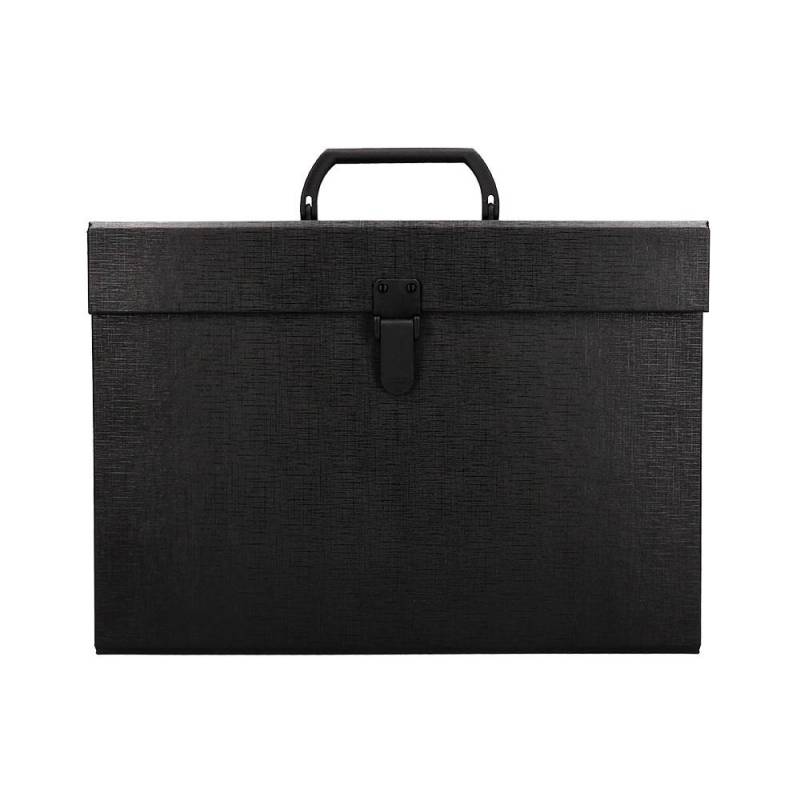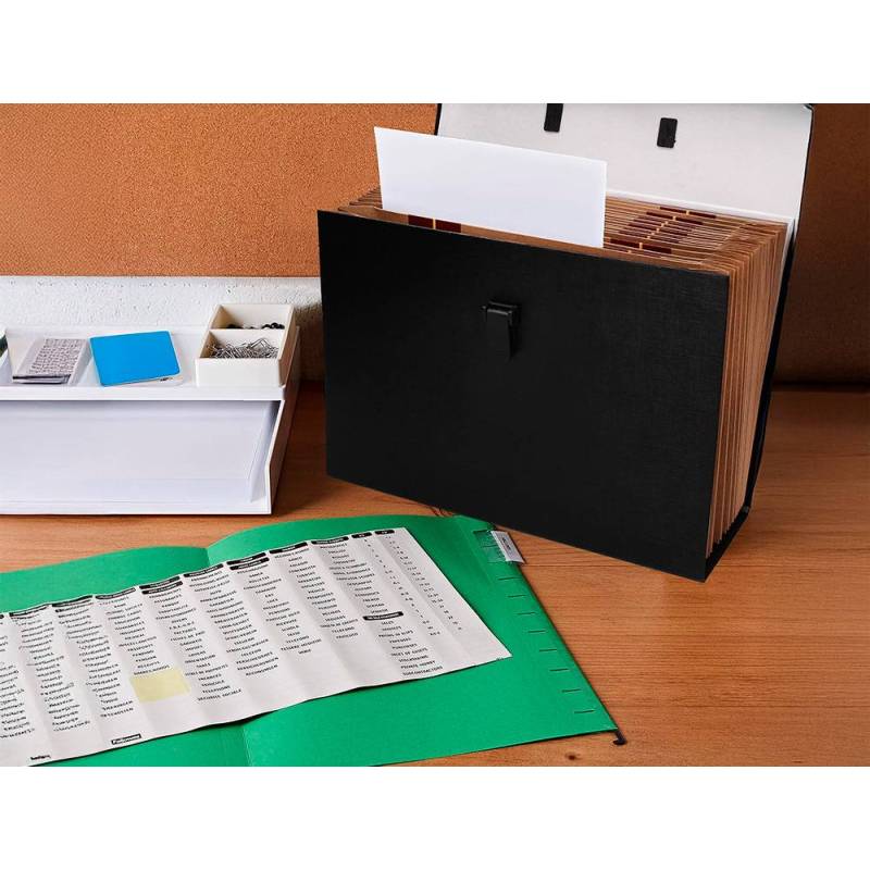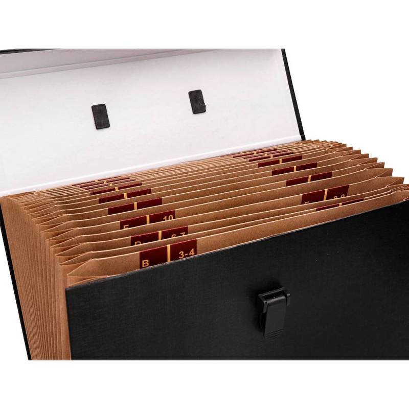MALETIN LIDERPAPEL CON FUELLE Y ASA CARTON FORRADO 19 DEPARTAMENTOS 255X390X120 MM COLOR NEGRO