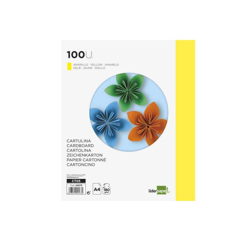 Cartulina Liderpapel color amarillo a4 180 g/m2