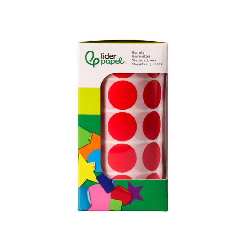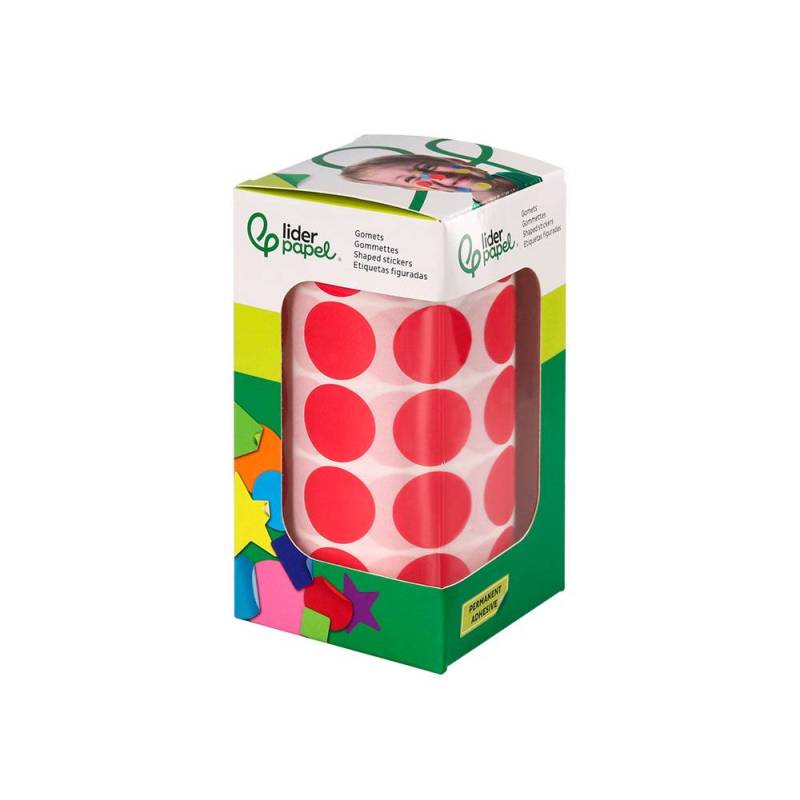 GOMETS LIDERPAPEL AUTOADHESIVO S CIRCULOS 20 MM ROJO ROLLO DE 2000 UNIDADES EN CAJA DE CARTON