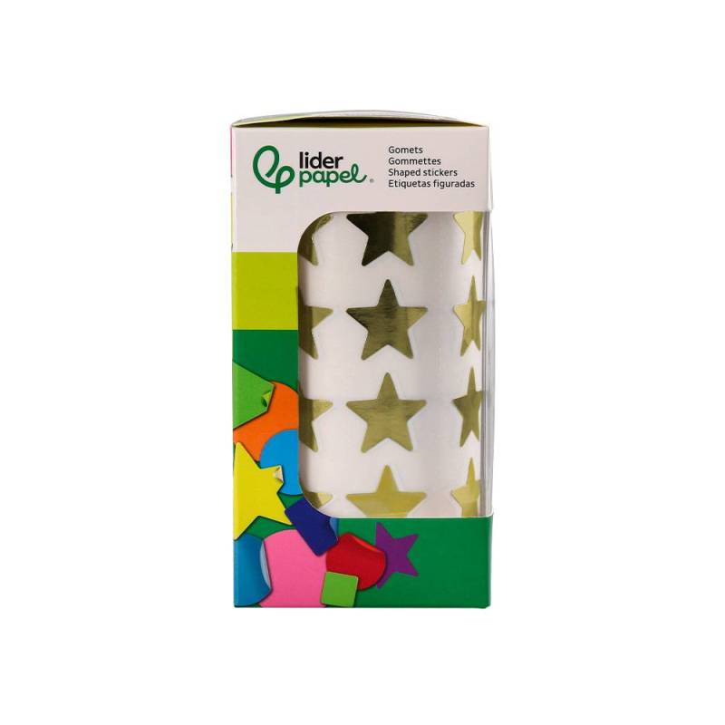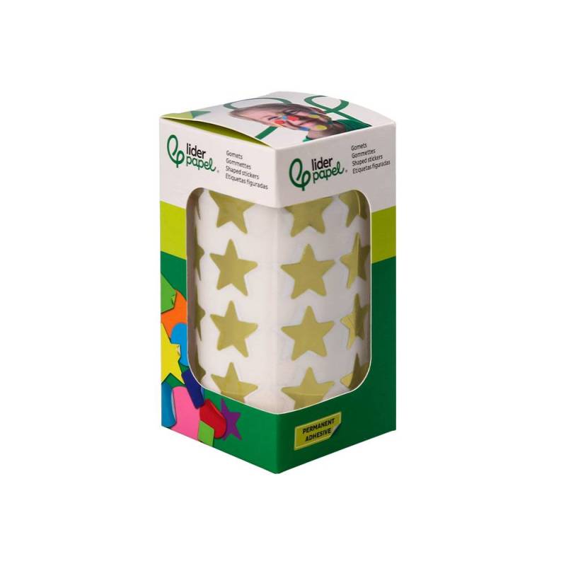 GOMETS LIDERPAPEL AUTOADHESIVO S ESTRELLAS DORADAS 20 MM 1500 UNIDADES EN CAJA DE CARTON
