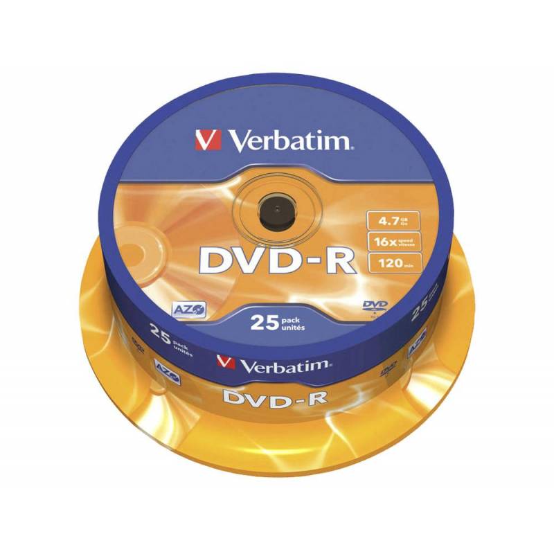 DVD-R VERBATIM CAPACIDAD 4.7GB VELOCIDAD 16X 120 MIN TARRINA DE 25 UNIDADES