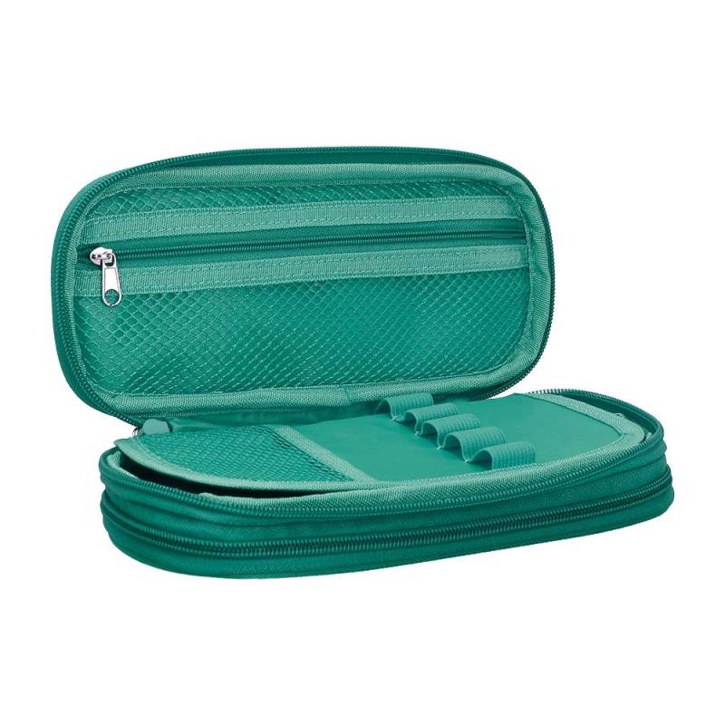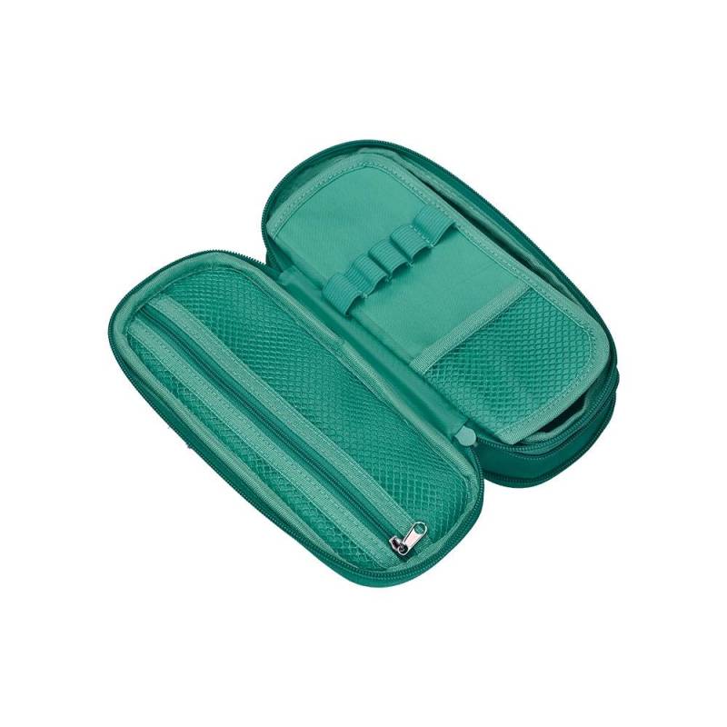 Este estuche portatodo de la colección Color Pop destaca por su diseño vibrante en color turquesa y su estructura práctica con dos cremalleras independientes. Su compartimento extensible ofrece espacio adicional cuando es necesario, manteniendo un tamaño compacto y cómodo para transportar tus útiles escolares o de oficina.