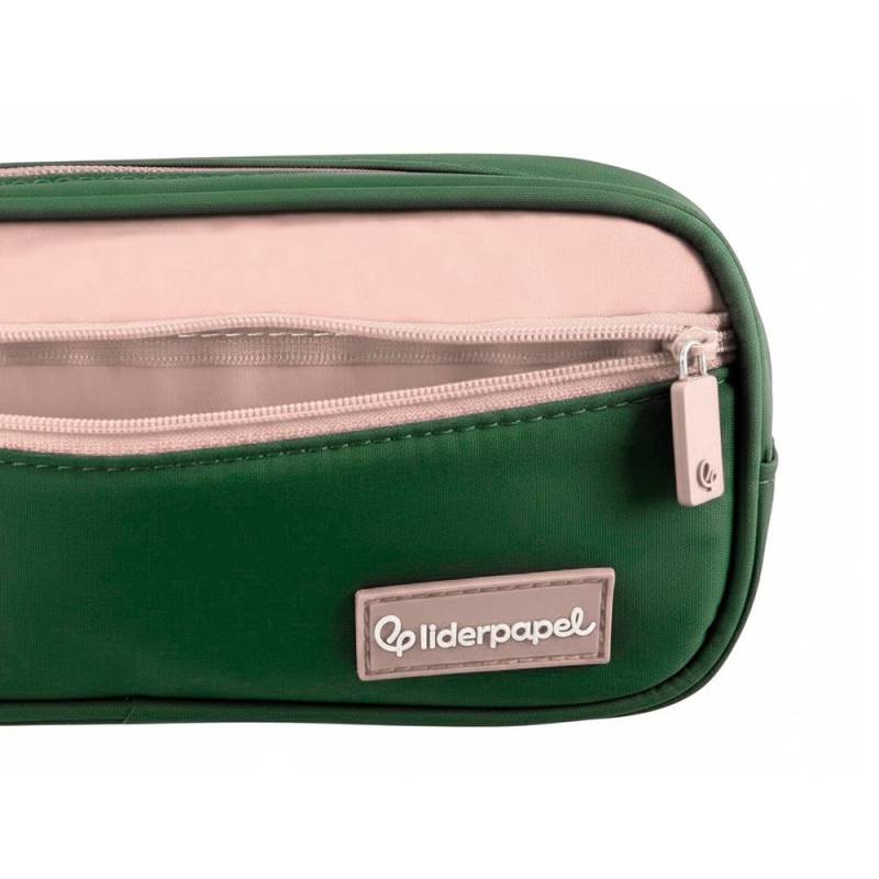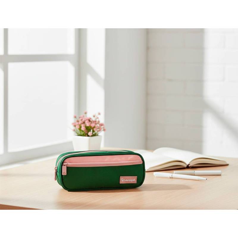 Este estuche portatodo con doble compartimento y bolsillo frontal es una solución práctica y resistente para mantener ordenados tus útiles escolares o de oficina. Su tamaño compacto y diseño funcional permiten un fácil transporte y acceso rápido a bolígrafos, lápices y otros accesorios, mientras que su color verde militar aporta un toque moderno y sobrio.