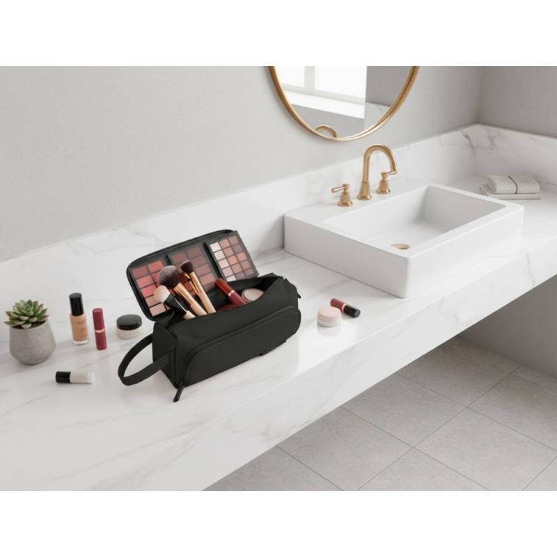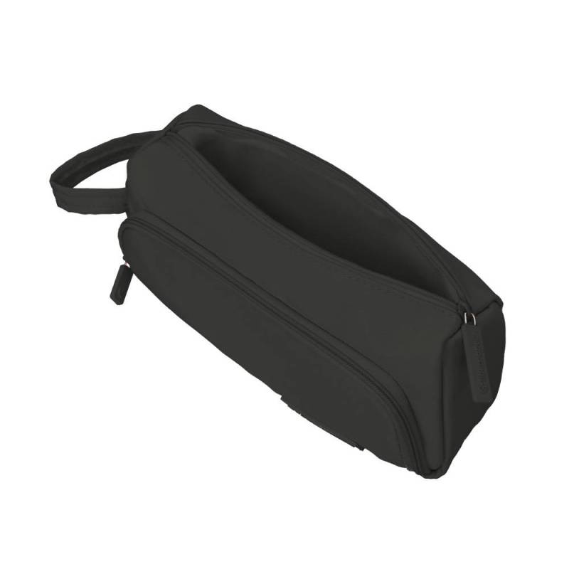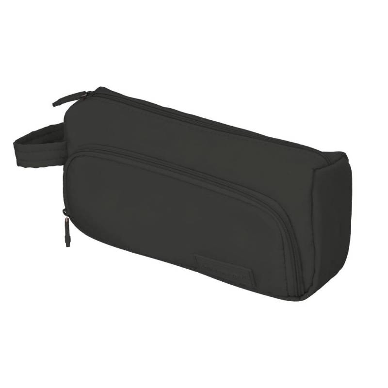 Este estuche portatodo es una solución práctica y compacta para mantener organizados tus útiles escolares, de oficina o personales. Con un diseño funcional que incluye dos cremalleras y un bolsillo interior, permite un acceso rápido y una mejor distribución del contenido. Su acabado en color negro aporta un toque sobrio y profesional, ideal para diferentes entornos.