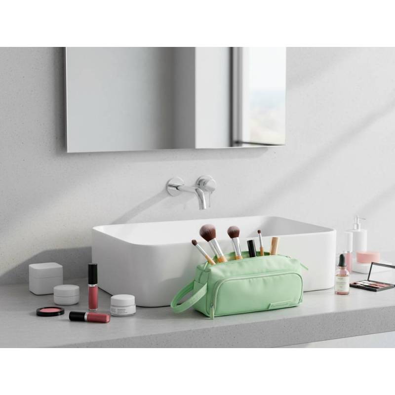 Este estuche portatodo combina funcionalidad y estilo en un diseño compacto y moderno. Con dos compartimentos independientes y un bolsillo interior adicional, permite una organización eficiente de tus útiles escolares o de oficina. Su tamaño reducido y material resistente al agua lo convierten en un accesorio práctico para uso diario, ideal para llevar en mochilas o bolsos.