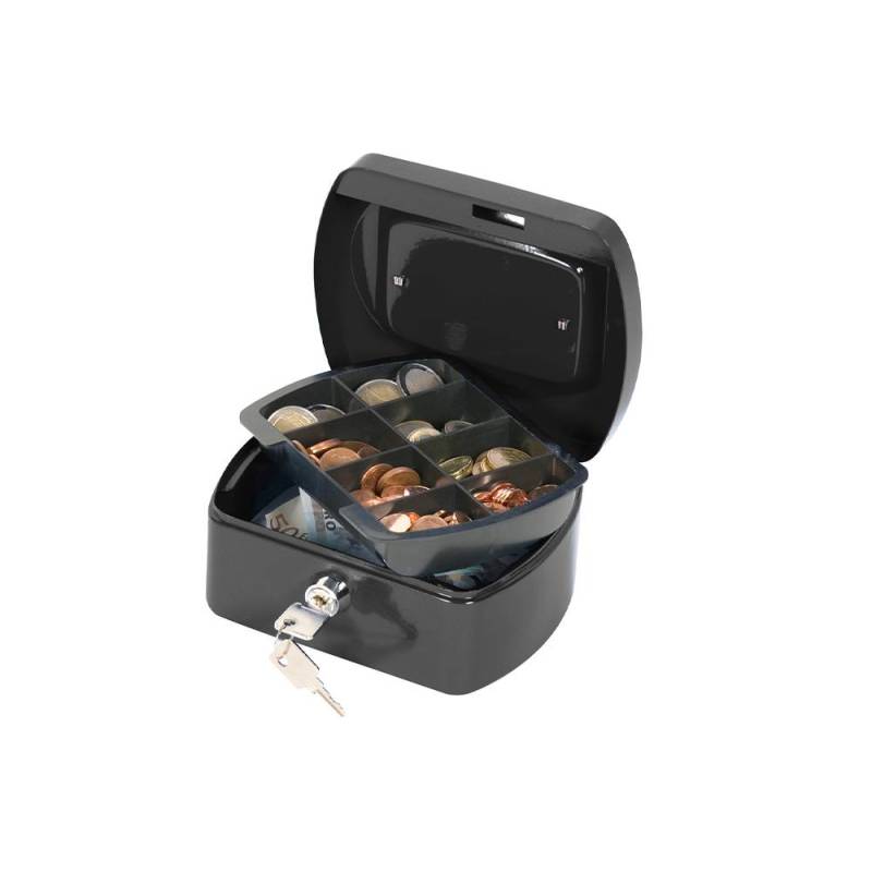 Caja caudales Q-Connect 6" 152x115x80 mm color negro con bandeja portamonedas