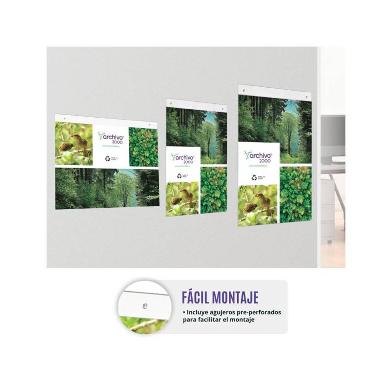 Expositor mural archivo 2000 din a3 horizontal con taladros espesor 2 mm cristal transparente 420x325 mm. |