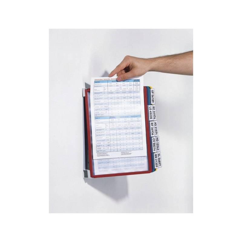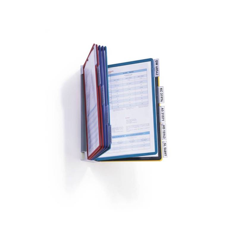 Organice y exhiba sus documentos con facilidad gracias a este práctico portacatálogo de pared, diseñado para contener hasta 10 fundas en formato DIN A4 con colores surtidos que facilitan la identificación visual. Fabricado por Durable, reconocido por la calidad y durabilidad de sus productos, este sistema mural es ideal para mantener documentos, catálogos y folletos accesibles y ordenados en oficinas, mostradores o espacios públicos.